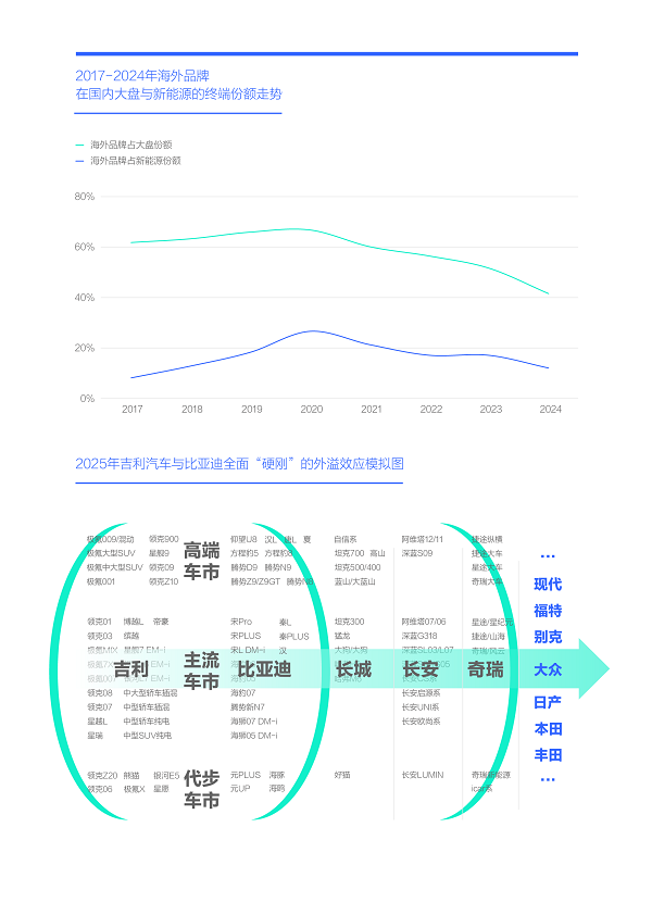 海外品牌占大盤與新能源的份額跌至40%、10%,吉利與比亞迪的“硬剛”,迫使海外品牌把2025-2026年新節(jié)能戰(zhàn)略的試水期變成決戰(zhàn)期