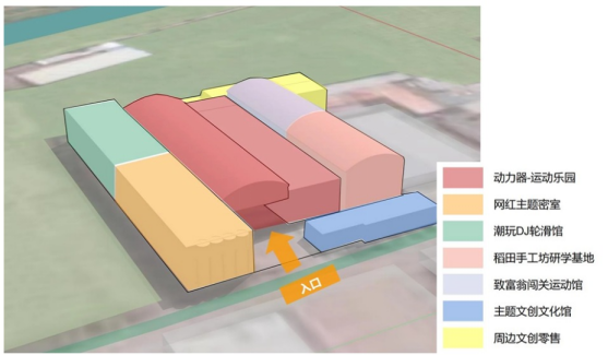 2.優(yōu)化結(jié)構(gòu):圍繞六大核心區(qū)域,清晰呈現(xiàn)舊廠房變身運動娛樂綜合體;