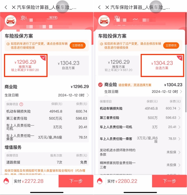 隨即記者也調研了幾個頭部車險線上平臺,平安好車主APP的車險針對燃油車、新能源車皆可投保,但并未明確兩者投保的區(qū)別,而打開中國人保APP新能源專區(qū)投保車險,同樣可支持燃油車和新能源汽車,不同的是,中國人保APP可以通過智能推薦方案或是自定義方案,實現(xiàn)每一步實時報價,消費者可根據(jù)自身需求靈活組合,極大地提升了無論是燃油車或是新能源車主的個性化車險需求。