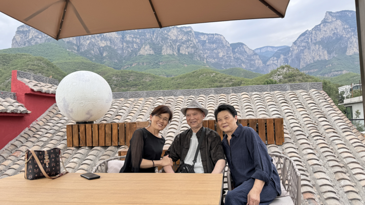 賈樹紅(右一)和妹妹陪父親在云臺(tái)山。張麗娜攝