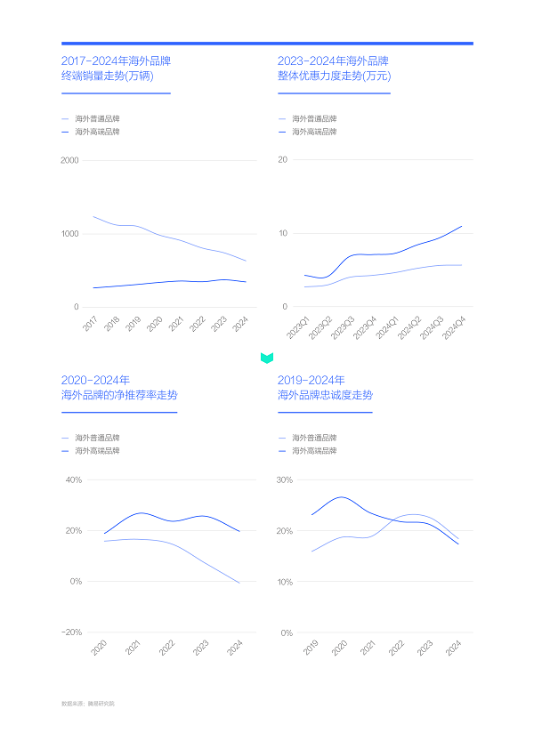 2024年中國車市的品牌訴求高達68.35%,但近幾年海外品牌的忠誠度、凈推薦率等指標大幅下滑,嚴重危及自身品牌力