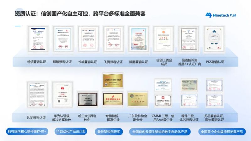 首先,九科信息利用云原生技術完美解決了“信創(chuàng)”兼容問題。作為國內目前唯一采用全云原生的RPA產品,它不占用本地資源,機器人云端部署,可以和客戶已有的云架構、云方案絲滑融合,讓九科信息的軟件能夠廣泛兼容信創(chuàng)生態(tài)上游系統(tǒng)。