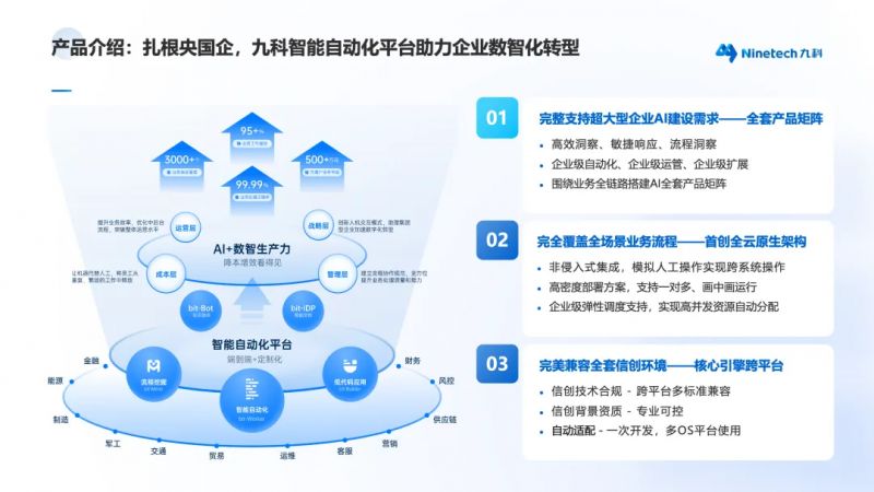 作為國央企數字化轉型專家,九科信息對上述三大剛性需求有著深刻洞察:降本增效是起點,數據整合是支點,“信創(chuàng)”兼容是底線。