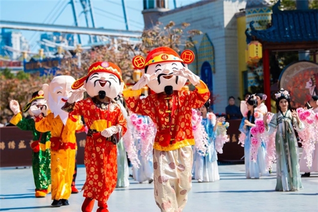 重慶歡樂(lè)谷推出南派舞獅、川劇變臉、鐵水鋼花、飛天火壺、皮影戲等多種非遺、年俗表演。其中,潮汕英歌舞首次在園區(qū)亮相,其強(qiáng)烈的藝術(shù)風(fēng)格和濃厚的潮汕文化韻味,受到游客追捧;武漢歡樂(lè)谷也推出首個(gè)湖面非遺火龍秀,火壺表演搭配“火龍鋼花”,1500℃金花四濺如飛天流星劃過(guò)夜空,在水面映照成光,讓游客們感受到傳統(tǒng)技藝的震撼之美;上海歡樂(lè)谷里,滾燈、魚燈輪番上陣,非遺表演目不暇接,氣勢(shì)如虹的磅礴中華戰(zhàn)舞,用鏗鏘有力的鼓點(diǎn),敲出生生不息的紅火中國(guó)年……非遺春節(jié)催熱了非遺表演,但這些“非遺元素”看似是“年年歲歲花相似”,其實(shí)是“歲歲年年人不同”。夜空,飛天火壺、打鐵花的火樹銀花與無(wú)人機(jī)表演交相輝映;眼前,傳統(tǒng)的舞獅、變臉和以毛絨為主角的“毛絨絨”主題場(chǎng)景相得益彰;耳邊,英歌舞的豪邁鼓點(diǎn)和音樂(lè)節(jié)的勁爆節(jié)拍毫不違和……這一杯傳統(tǒng)與現(xiàn)代、古老與科技混搭的烈酒,才更對(duì)年輕人的胃口。
