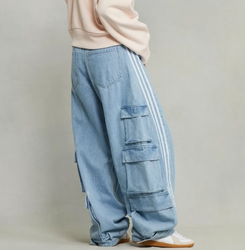 實際上,阿迪達斯最早的牛仔爆款來自2023年底adidas Originals推出Adilenium系列中的一條牛仔神褲。正如1960年代隨著化工產(chǎn)業(yè)發(fā)展,尼龍面料進入服裝行業(yè)后,阿迪達斯創(chuàng)始人Adolf Dassler推出尼龍運動套裝,并將標(biāo)志性的三條紋裝飾在衣袖和褲腿上,打造了品牌經(jīng)典。如今該品牌對于牛仔面料,特別是將品牌標(biāo)志的三條紋與牛仔褲結(jié)合的思路,也開始了更深度的探索。