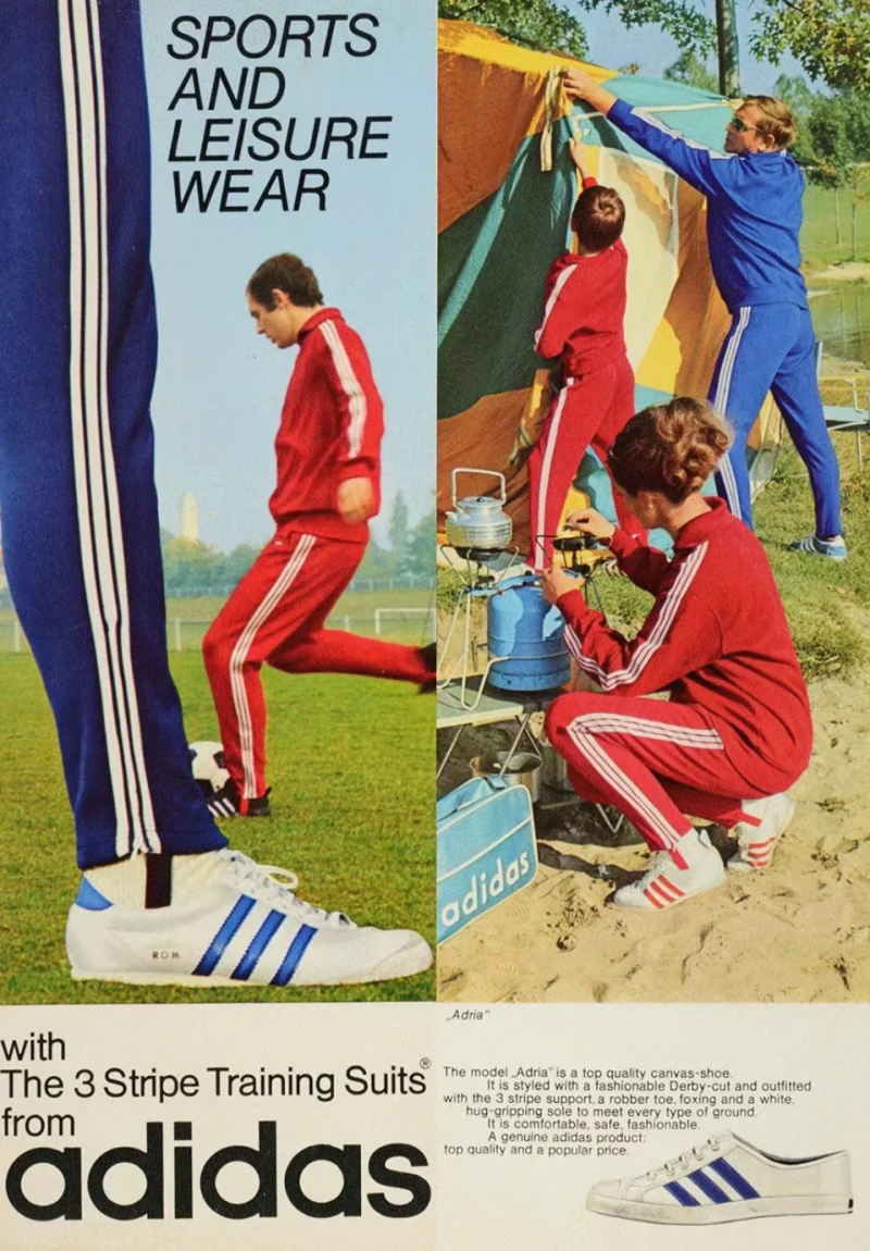 圖:上世紀(jì)70年代,阿迪達斯開始向家庭推廣三條紋運動服