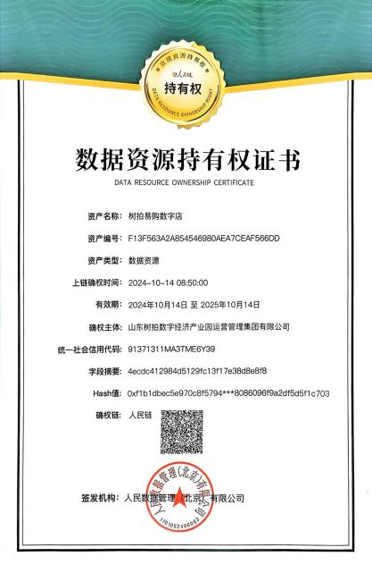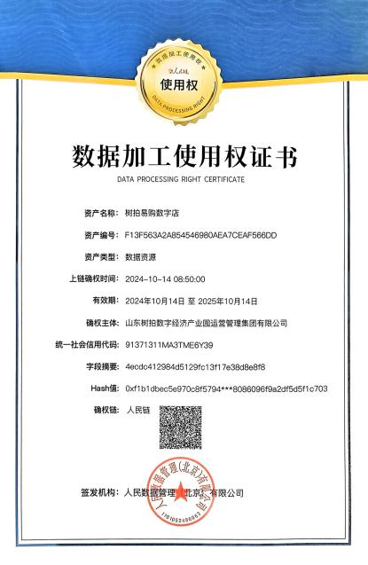 山東樹拍數(shù)字集團在數(shù)據(jù)領(lǐng)域?qū)崿F(xiàn)重大突破,成功斬獲人民網(wǎng)?人民數(shù)據(jù)頒發(fā)的《數(shù)據(jù)資源持有權(quán)證書》《數(shù)據(jù)加工使用權(quán)證書》《數(shù)據(jù)產(chǎn)品經(jīng)營權(quán)證書》,成為羅莊區(qū)首家開展數(shù)據(jù)確權(quán)登記的企業(yè)。這一里程碑事件意義非凡,它標(biāo)志著羅莊區(qū)企業(yè)在數(shù)據(jù)利用方面從數(shù)據(jù)資源化到數(shù)據(jù)資產(chǎn)化邁出了關(guān)鍵一步,為山東樹拍數(shù)字集團的發(fā)展提供了更堅實的數(shù)據(jù)基礎(chǔ)和戰(zhàn)略優(yōu)勢。