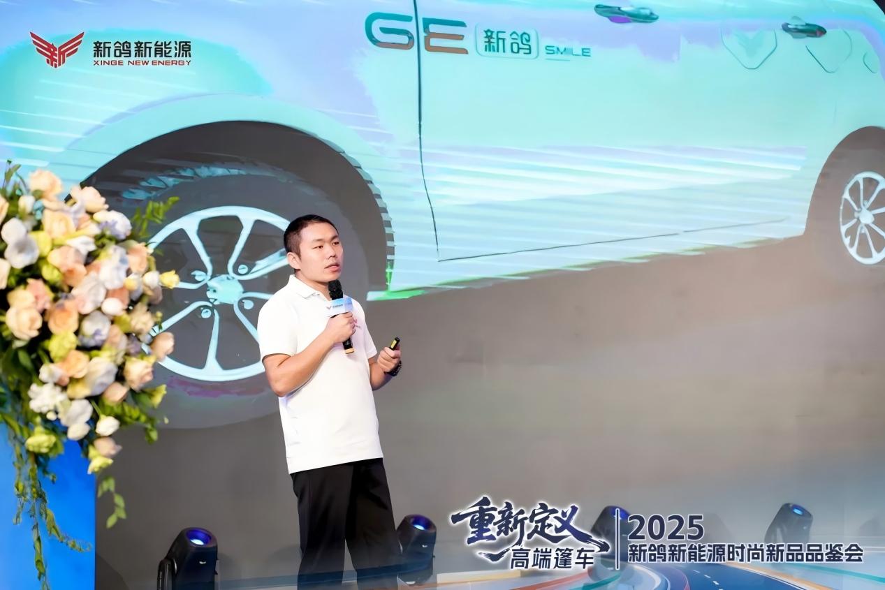 圖為新鴿副總經(jīng)理兼營銷中心主任鄭鳳志發(fā)布新鴿2025下半年營銷戰(zhàn)略