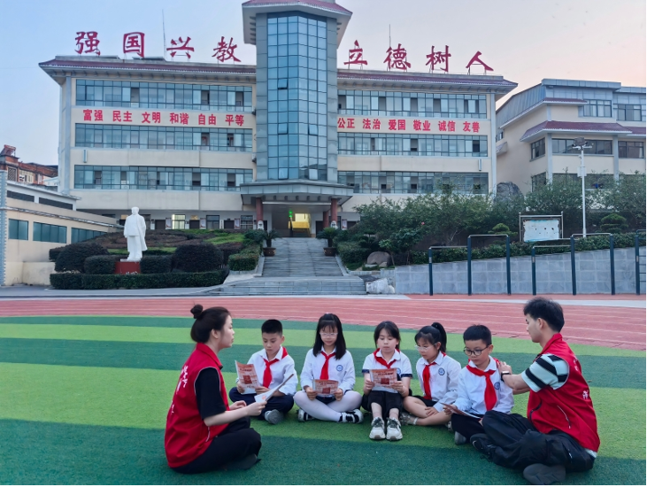 “小朋友,知道為什么不能買(mǎi)電子煙嗎?因?yàn)樗认銦煹奈:€大呢!”在縣實(shí)驗(yàn)小學(xué)的操場(chǎng)上,小林和小熊正舉著漫畫(huà)手冊(cè),給孩子們講《未成年人保護(hù)法》。他們手中的畫(huà)冊(cè),繪滿(mǎn)了各式假冒電子煙圖例、法律宣傳折頁(yè)上“法治護(hù)航成長(zhǎng)”幾個(gè)字格外醒目。