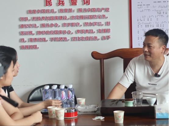 圖為實(shí)踐隊(duì)隊(duì)員與秋竹村崔主任開展面對面訪談 張媛絨 供圖