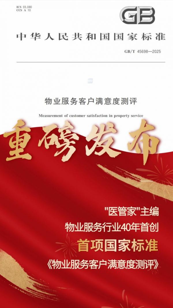近日,國(guó)家市場(chǎng)監(jiān)督管理總局(國(guó)家標(biāo)準(zhǔn)委)正式發(fā)布《物業(yè)服務(wù)客戶(hù)滿意度測(cè)評(píng)》(GB/T45698—2025)。這是我國(guó)物業(yè)服務(wù)行業(yè)誕生40年來(lái),首把面向客戶(hù)體驗(yàn)的“國(guó)家標(biāo)尺”,一舉填補(bǔ)標(biāo)準(zhǔn)空白。該項(xiàng)國(guó)家標(biāo)準(zhǔn)由全國(guó)物業(yè)服務(wù)標(biāo)準(zhǔn)化技術(shù)委員會(huì)(SAC/TC560)歸口,上海益中亙泰(集團(tuán))股份有限公司(“醫(yī)管家”)牽頭主編,標(biāo)志著行業(yè)標(biāo)準(zhǔn)化建設(shè)邁入新階段。
