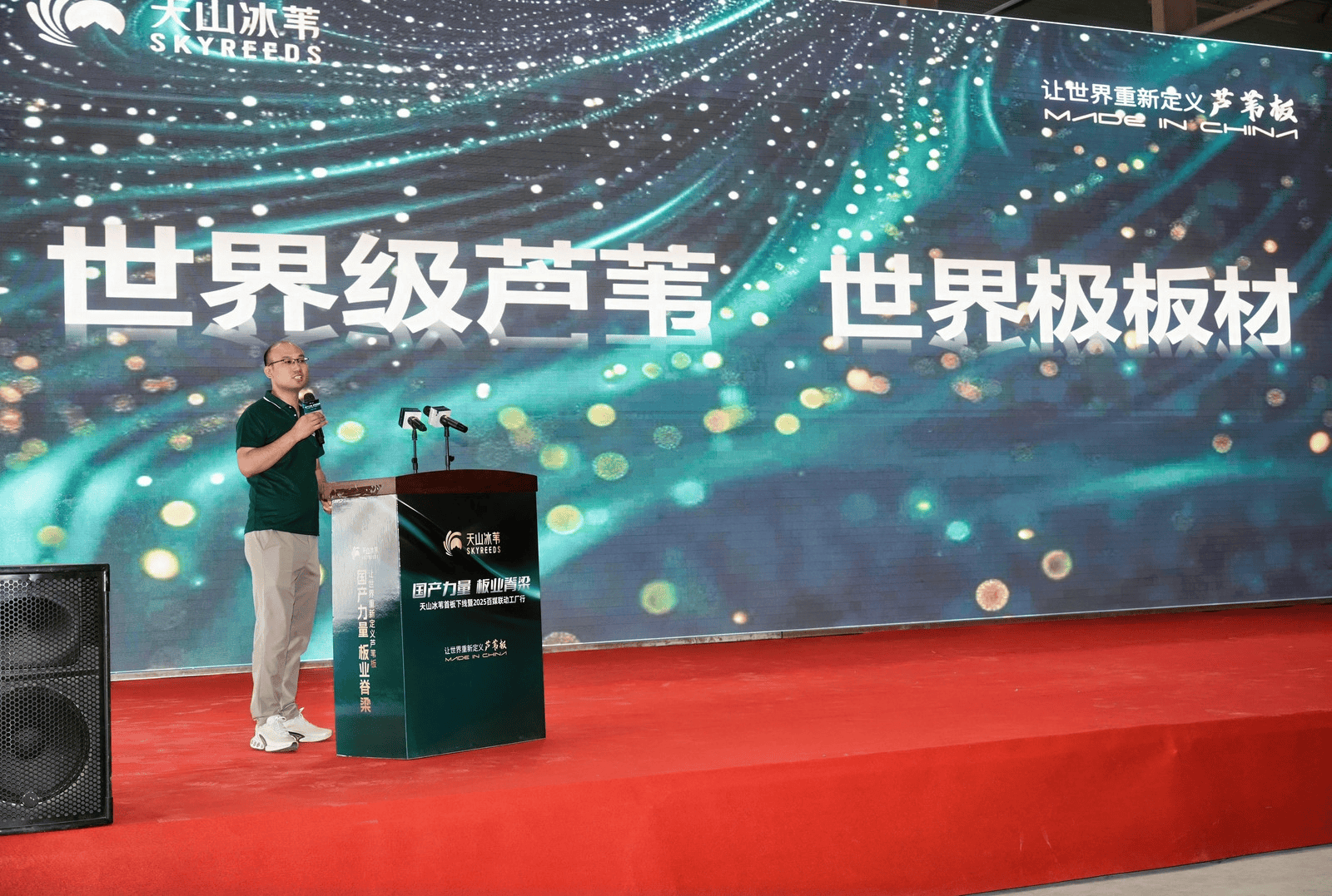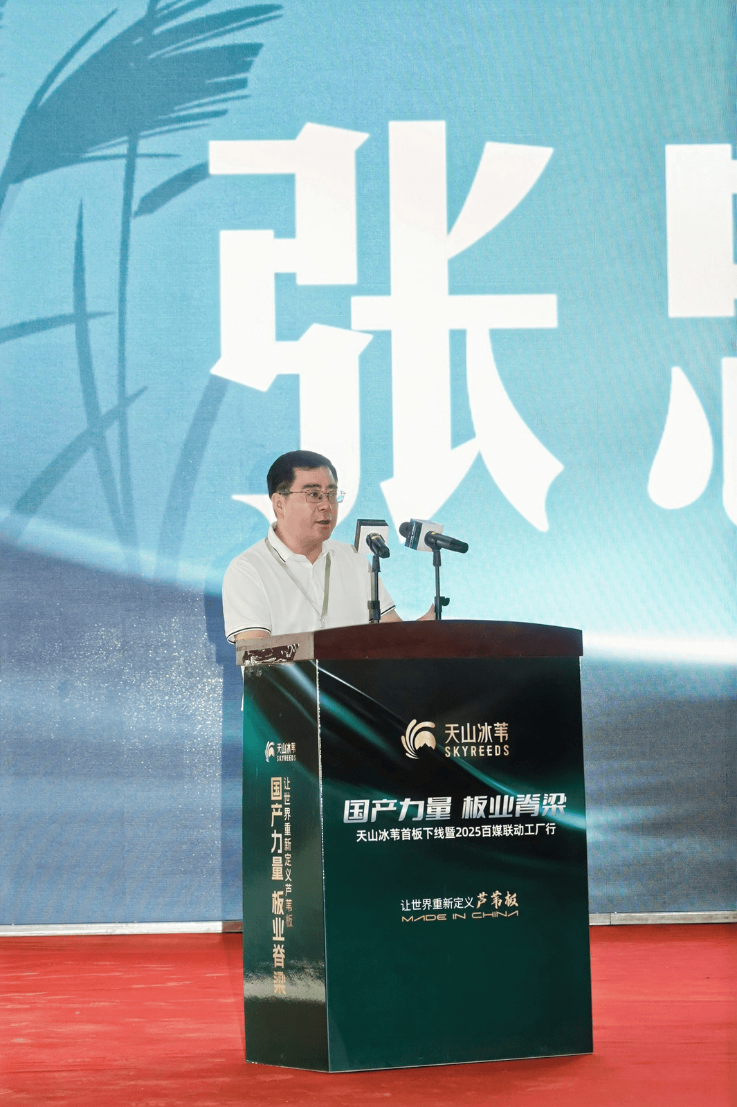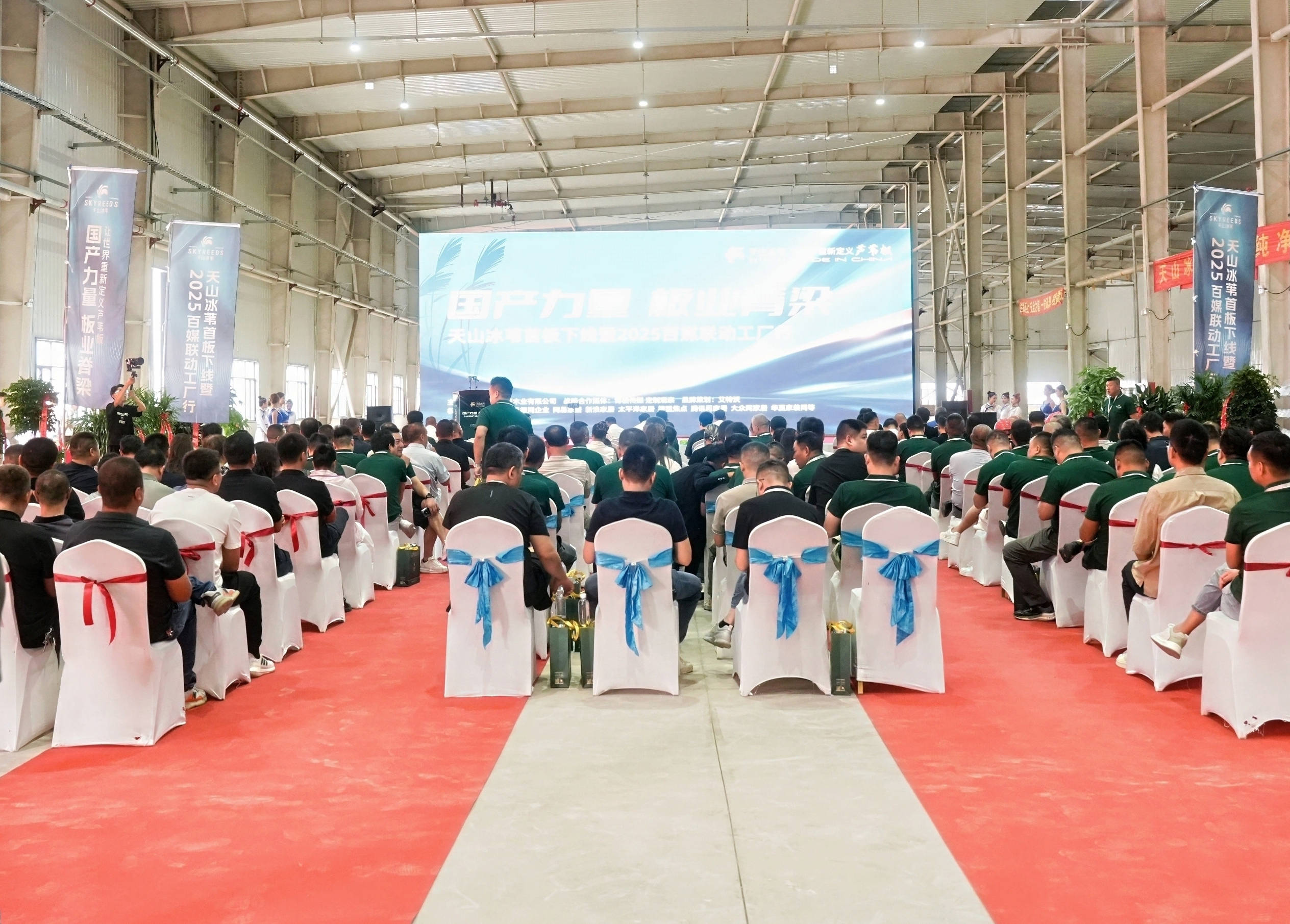 8月18日,由天山冰葦主辦、艾特沃全程參與品牌策劃的 “天山冰葦?天然純凈” 首板下線發(fā)布會(huì)暨 2025 百媒聯(lián)動(dòng)工廠行活動(dòng),在新疆博湖縣盛大啟幕。博湖縣委常委、常務(wù)副縣長李冰,國家林草局發(fā)展院處長張忠濤,亞聯(lián)機(jī)械股份有限公司董事長郭西強(qiáng),廣東省定制家居協(xié)會(huì)秘書長曾勇,行業(yè)標(biāo)準(zhǔn)起草人、工程師劉若一,巴州銳通木業(yè)有限公司總經(jīng)理蔡樹文,天山冰葦營銷總監(jiān)楊海林及眾多媒體代表齊聚現(xiàn)場(chǎng),共同見證這一國產(chǎn)高端板材的突破性時(shí)刻。