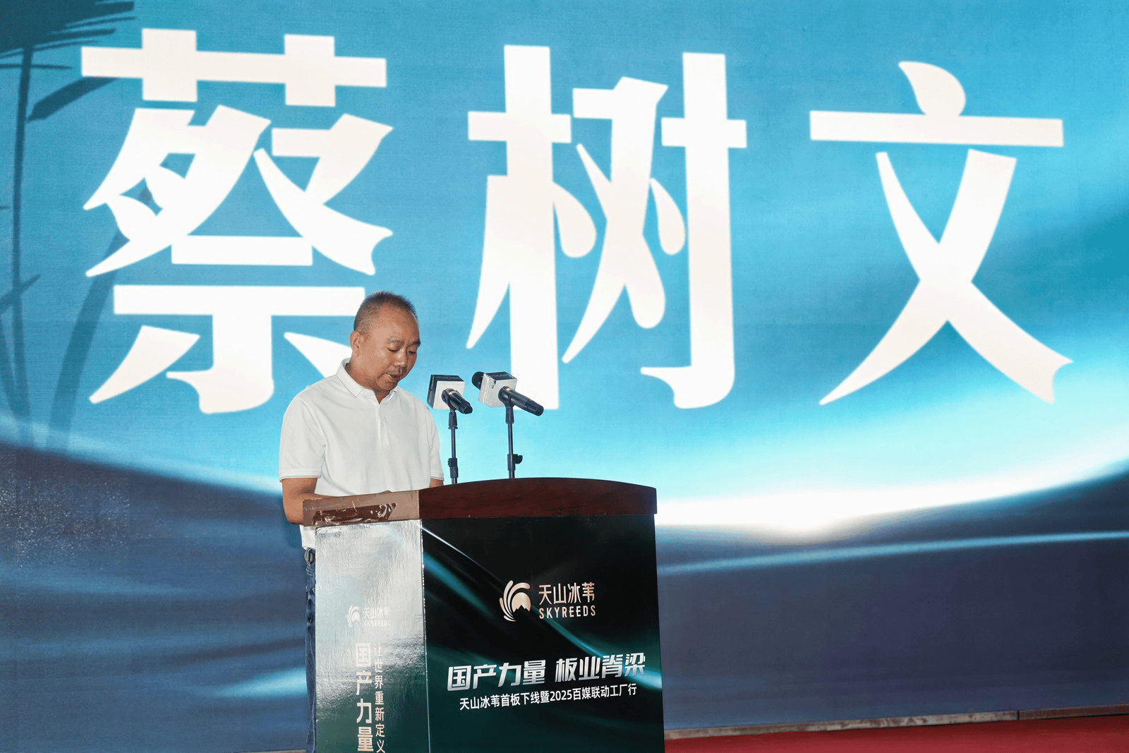 巴州銳通木業(yè)總經(jīng)理蔡樹文在致辭中道出企業(yè)初心:“選擇扎根博湖,是因?yàn)檫@里有得天獨(dú)厚的蘆葦資源和政府的大力支持。我們希望以蘆葦為‘源’,以創(chuàng)新為‘魂’,將天山冰葦打造成新疆乃至全國蘆葦資源高值化利用的標(biāo)桿?!?/p>