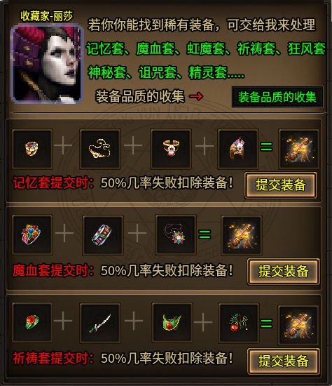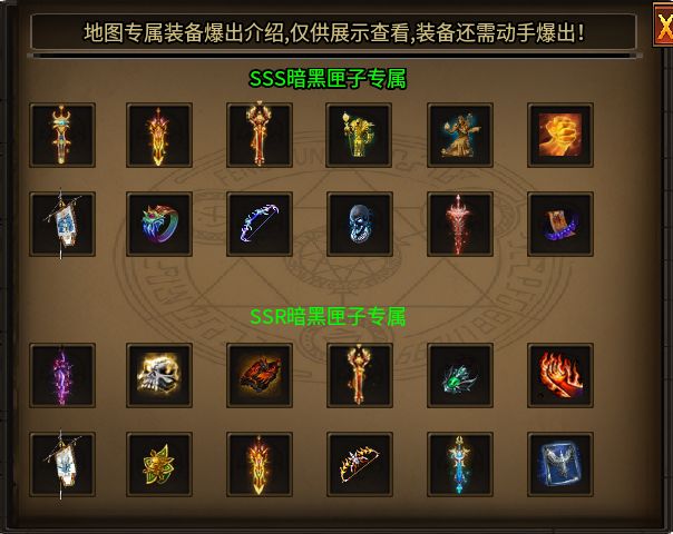 當(dāng)然,游戲內(nèi)本身就有非常多傳奇自有的裝備和怪物,加上暗黑專屬則更加豐富了,這些都在等待玩家一一探索和體驗(yàn)。本服為了方便玩家逐一體驗(yàn)和收集,特意做了非常完整的圖鑒系統(tǒng),包含特殊裝備收集、品質(zhì)裝備收集、暗黑專屬收集、和怪物圖鑒。每完成一個(gè)圖鑒都能大幅增加圖鑒屬性,成長(zhǎng)效果杠杠的!絕對(duì)滿足玩家長(zhǎng)線養(yǎng)成的沉浸式體驗(yàn)需求。