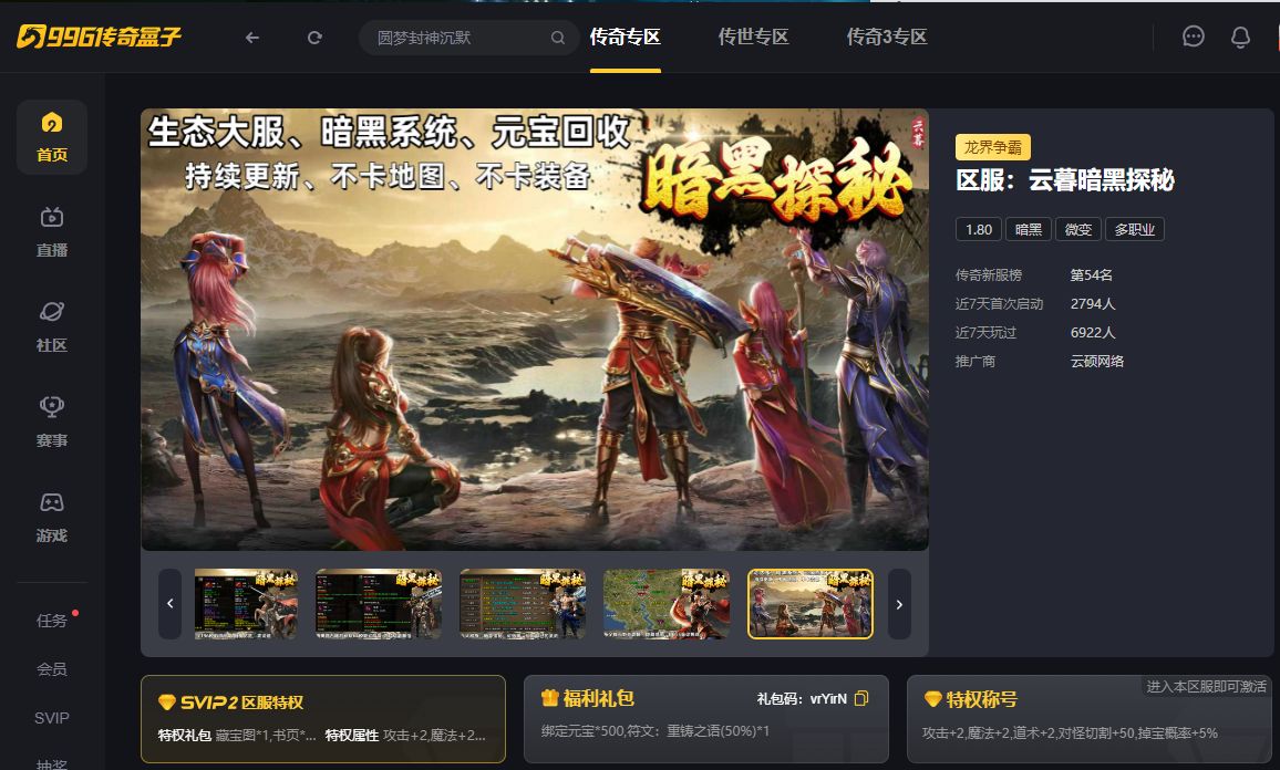 近日,一大波熱評(píng)為一款新服襲來(lái),傳奇老玩家表示這一回在國(guó)內(nèi)頭部傳奇手游平臺(tái)996傳奇盒子上撿到寶了!諸人心甘情愿為之又肝又氪,甚至開啟久違的熬夜模式,這就是小眾玩法暗黑特色加持的1.80暗黑微變多職業(yè)新服《云暮暗黑探秘》。