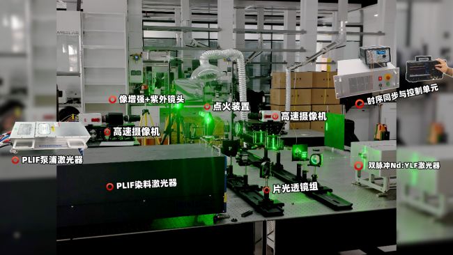 某國家實驗室聯(lián)合中科君達視界搭建一套以高速攝像機為核心采集端的PIV-PLIF同步耦合診斷系統(tǒng),實現(xiàn)火焰流動結構與化學反應區(qū)在同一時刻、同一平面上的同步成像,定量揭示湍流剪切、渦結構演化與火焰動態(tài)響應之間的瞬態(tài)耦合關系。