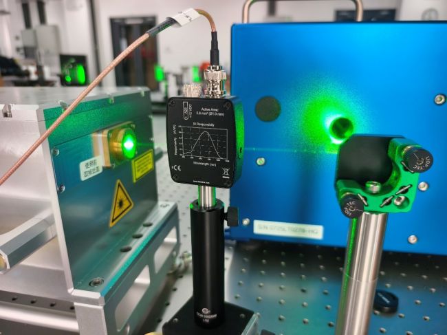 為消除泵浦激光器脈沖能量漲落對熒光圖像灰度值起伏影響,造成虛假的化學反應強弱變化,工程師們引入光電二極管對每個激光脈沖能量進行同步采樣,并通過示波器記錄脈沖峰值,建立激光能量隨時間變化的基準序列,與PLIF子系統(tǒng)中的千眼狼高速攝像機S1310M采集的幀編號對齊,后續(xù)利用千眼狼RFlow4流場測量軟件進行灰度強度校正,確保熒光強度的時域穩(wěn)定性。