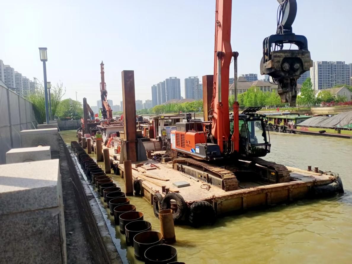 由于工程地處蘇州古城核心區(qū)域,緊鄰寒山寺景區(qū),周邊歷史底蘊深厚、人文景觀密集,生態(tài)環(huán)境敏感。項目團隊秉持“最小干預、最大保護”的綠色施工理念,守護古城生態(tài)“顏值”。工程建設區(qū)域涵蓋國家級生態(tài)管控區(qū)——楓橋景區(qū),團隊結合景區(qū)環(huán)境特點量身定制專項綠色施工方案。嚴格落實施工揚塵防治“6個100%”要求,通過每日巡河與無人機常態(tài)化管控,構建全天候環(huán)境監(jiān)測網絡。優(yōu)化施工時序與工藝,嚴格控制作業(yè)時間,最大限度降低噪聲、振動對周邊景區(qū)及居民區(qū)的影響。推行建筑垃圾分類回收與資源化利用,與地方政府協(xié)同推進土方就地調配,減少渣土外運,實現資源節(jié)約與環(huán)境保護的雙贏。此外,項目通過護岸生態(tài)化改造、沿岸綠化補植等舉措,讓升級后的航道與古城風貌、自然景觀無縫相融,盡顯“清水綠岸、城水相依”的生態(tài)畫卷。