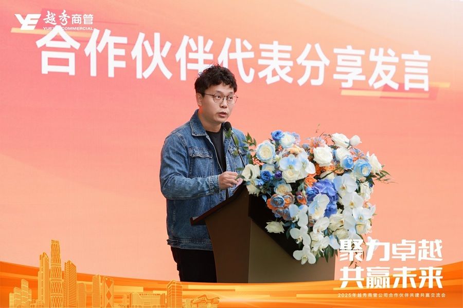 越秀商管副總裁周力大在開(kāi)場(chǎng)致辭中對(duì)各位合作伙伴的到來(lái)表示熱烈歡迎和衷心感謝。他強(qiáng)調(diào)相互選擇、彼此信任、共同耕耘的重要性,并指出此次交流會(huì)正是為了重申“攜手共進(jìn)、相伴同行”的承諾。隨后,周力大介紹了越秀商管的業(yè)務(wù)布局與規(guī)模,并全面回顧了2025年取得的經(jīng)營(yíng)成績(jī)。他特別列舉了多個(gè)與合作伙伴并肩奮斗的感人案例,對(duì)大家的專(zhuān)業(yè)付出給予高度肯定。