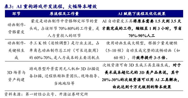AI 逐步賦能游戲開(kāi)發(fā)全流程,從早期的美術(shù)資源生成、代碼輔助編寫(xiě)等輔助性工作,逐步向玩法設(shè)計(jì)、劇情架構(gòu)等核心創(chuàng)意領(lǐng)域滲透,有望持續(xù)提升游戲研發(fā)效率。據(jù)騰訊內(nèi)部統(tǒng)計(jì),AI 賦能下,光子工作室的角色動(dòng)畫(huà)制作周期縮短了 40%,部分項(xiàng)目組角色技能原型驗(yàn)證時(shí)間從 2 周壓縮至 3 天。