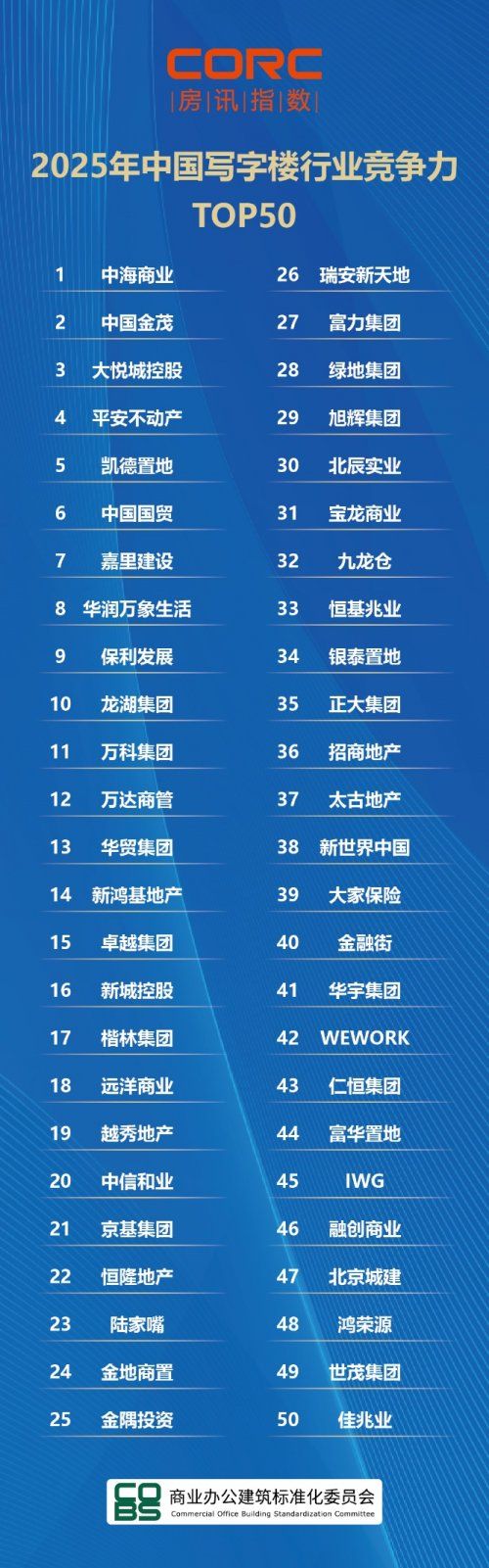 從整體上榜格局來(lái)看,寫字樓TOP50榜單,央企以絕對(duì)優(yōu)勢(shì)包攬前三。中海商業(yè)蟬聯(lián)第一,中國(guó)金茂與大悅城緊隨其后,三者共同構(gòu)成我國(guó)商業(yè)辦公行業(yè)的最強(qiáng)矩陣。這三家企業(yè)不僅排名前三,同時(shí)也是今年競(jìng)爭(zhēng)力表現(xiàn)增速最快的頭部企業(yè)。中海商業(yè)長(zhǎng)期深耕COOC中海商務(wù)領(lǐng)域,覆蓋范圍廣且服務(wù)支持體系日漸成熟;中國(guó)金茂則憑借布局優(yōu)勢(shì)和專業(yè)服務(wù)鞏固市場(chǎng)地位;而大悅城依靠?jī)?yōu)質(zhì)商業(yè)業(yè)務(wù)與行業(yè)頂尖的品牌信譽(yù)度,繼續(xù)維持其在消費(fèi)者中的高度粘性。