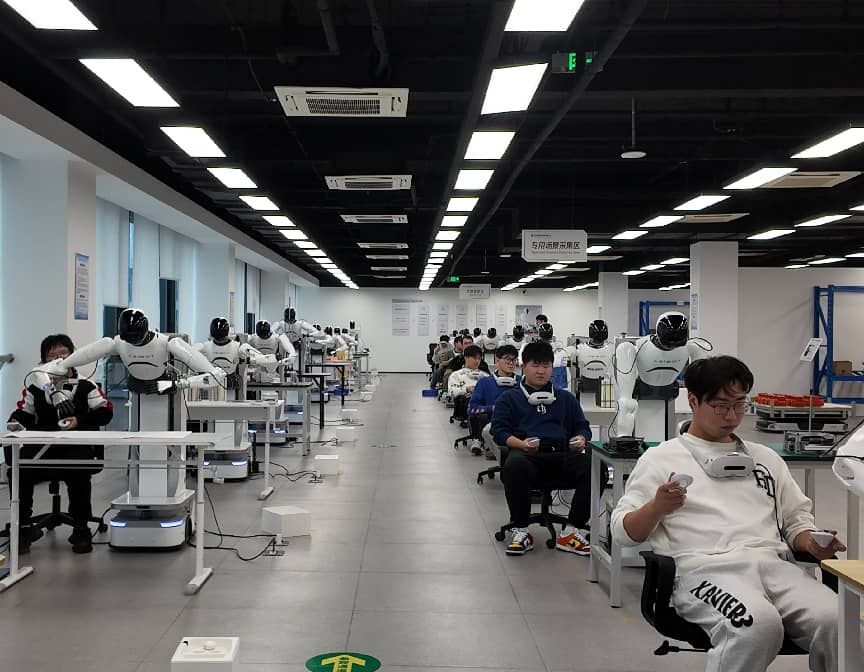 走進杭州灣具身智能創(chuàng)新中心數(shù)據(jù)采集區(qū),這里通過部署50套數(shù)采機器人和模擬真實的工業(yè)環(huán)境,實現(xiàn)了機器人在真實場景的動態(tài)數(shù)據(jù)采集。