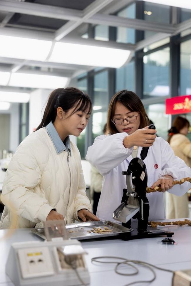 隨后,達(dá)人團(tuán)隊(duì)來到持正堂,深入探訪科學(xué)提取技術(shù)與指紋圖譜技術(shù)核心科技區(qū)。在技術(shù)專家劉洋、江丹的講解下,通過原料原液展示、原料切片互動(dòng)、指紋圖譜技術(shù)演示,直觀領(lǐng)略了養(yǎng)生一號(hào)的科學(xué)工藝與質(zhì)控體系。