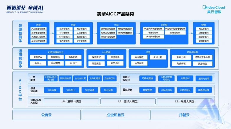 2026年1月15日,美云智數(shù)成功舉辦“智造進(jìn)化 全域AI”線上發(fā)布會,正式發(fā)布美擎AIGC 3.1平臺及智能體工廠解決方案,全面展示AI技術(shù)在制造業(yè)全價值鏈的深度應(yīng)用。該方案依托美的集團(tuán)多年智能制造經(jīng)驗,旨在為企業(yè)提供從數(shù)字化到智能化的高效升級路徑。
