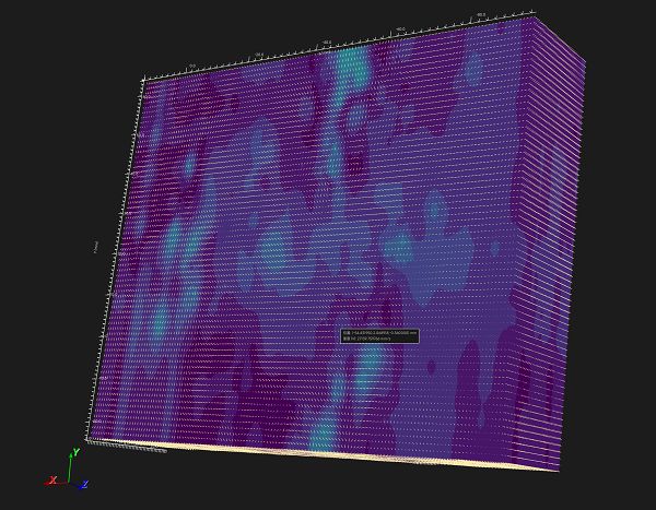 千眼狼RFlow4 PIV流場測量軟件具備“粒子重構(gòu)可視化”功能,重構(gòu)區(qū)域內(nèi)的粒子效果如圖11: