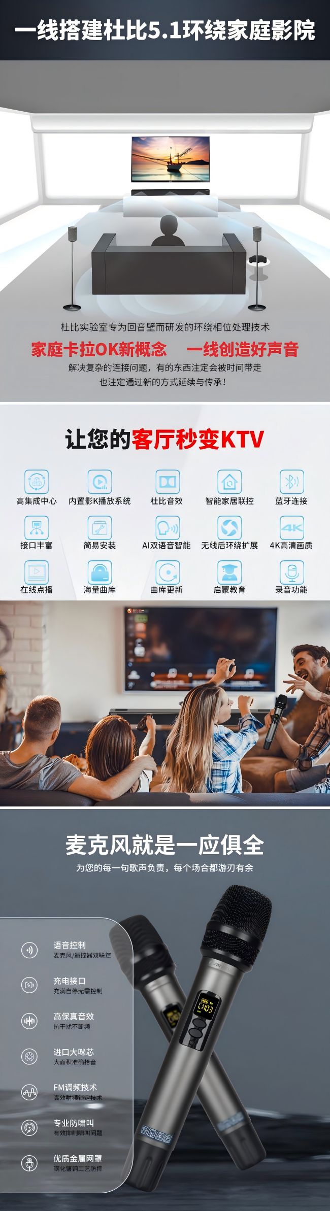杜比實驗室專為回音壁而研發(fā)的環(huán)繞相位處理技術,讓聲場指向更加精準;語音識別時會自動降低背景音量,確保指令準確接收;內置的海量正版資源,再也沒有煩人的廣告等待;RS232智能中控接口更可接入全屋智能系統(tǒng),一句話就能調節(jié)燈光氛圍,真正實現了“影院級體驗”。