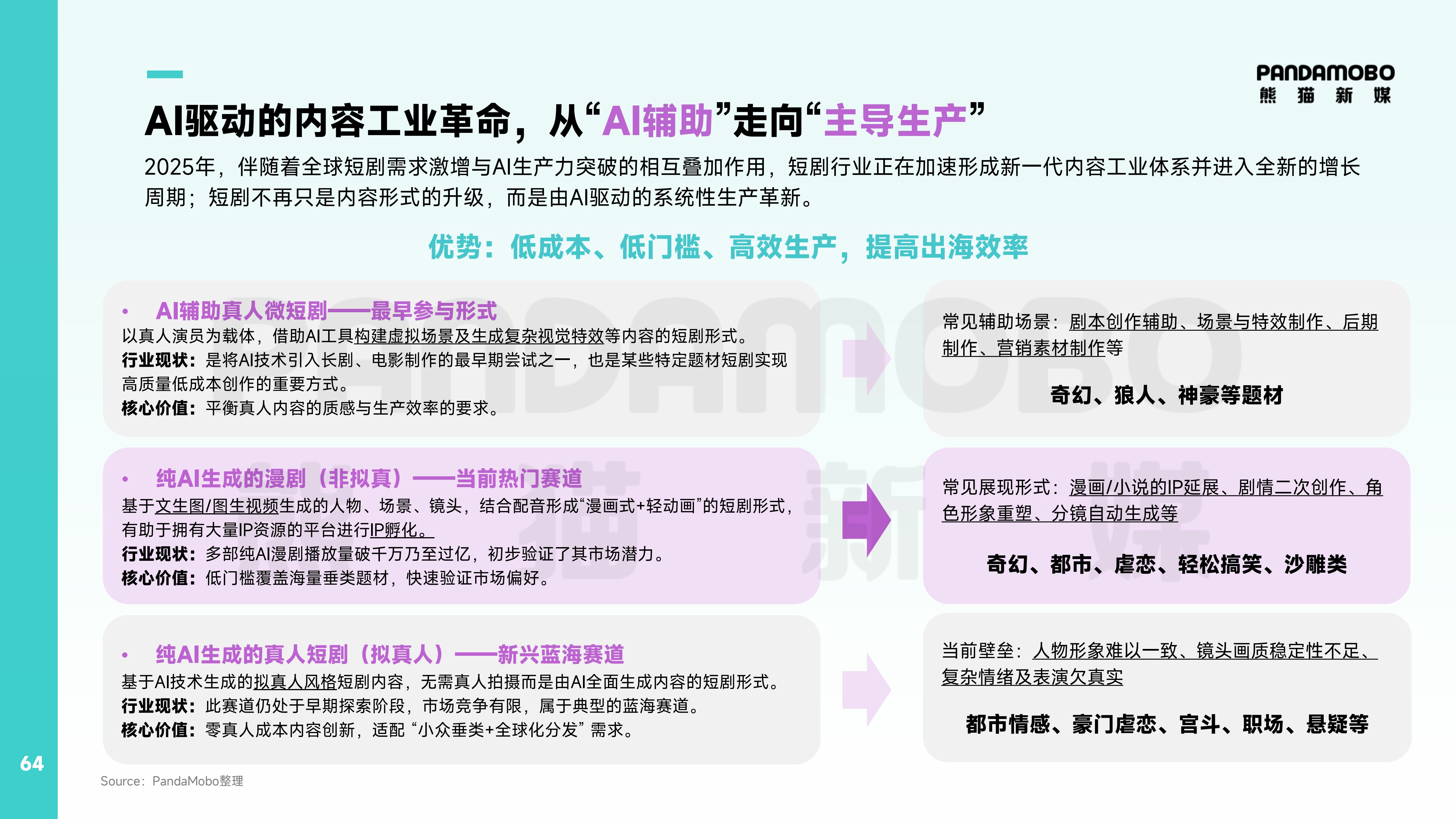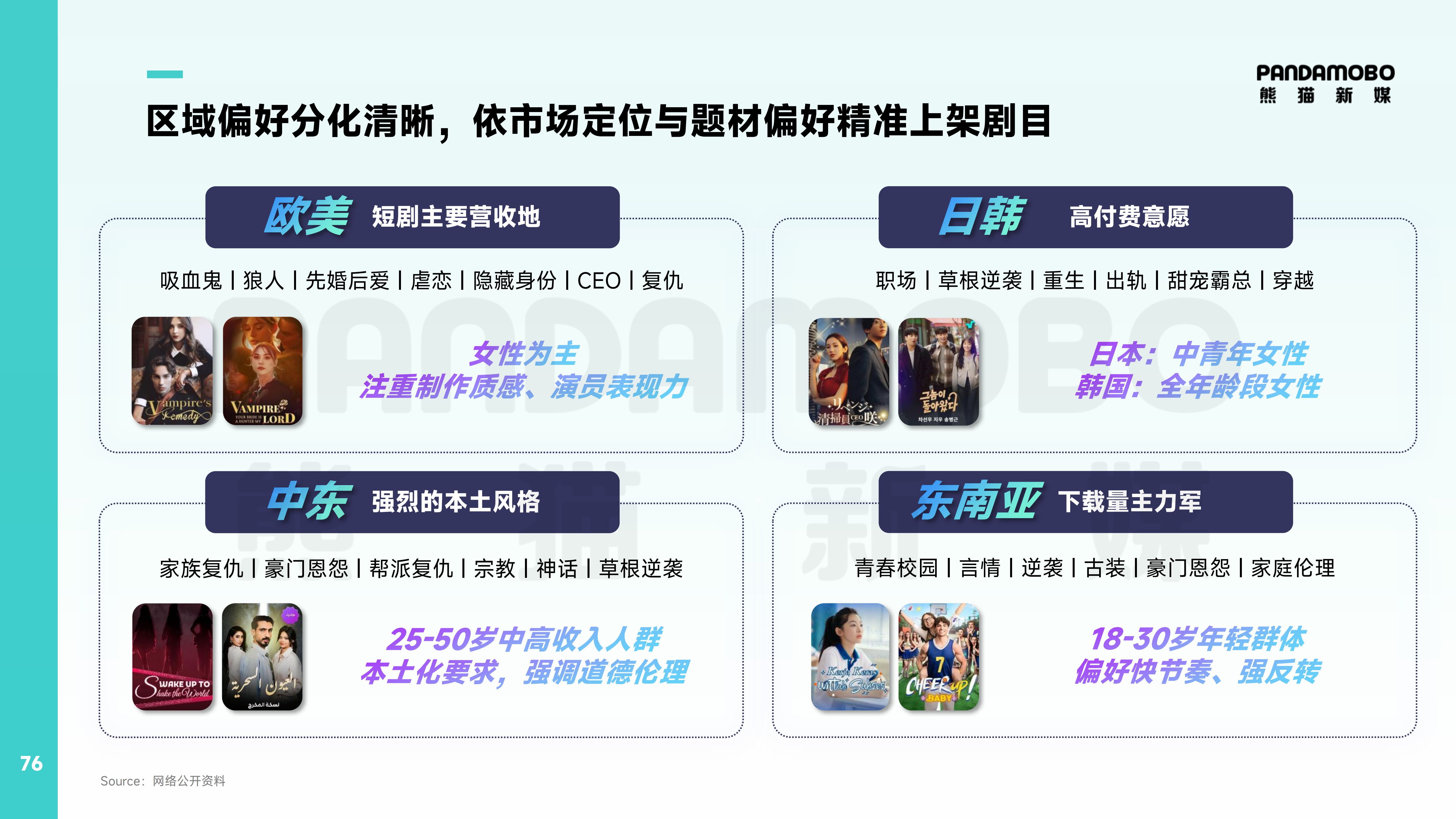 依托在短劇出海領域的深厚積累,目前,PandaMobo已構(gòu)建從內(nèi)容本土化適配、AI工具應用到全渠道投放的閉環(huán)服務,相關案例在報告中提供了可復用的營銷方法論。