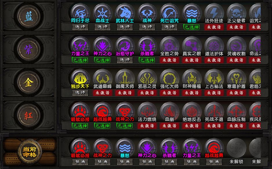 在玩家升到50級后,就能解鎖命格系統(tǒng)了,之后每隔50級獲取一個新的命格槽,300級后還需要通過轉(zhuǎn)生、渡劫等要求來解鎖更多命格槽。游戲中的命格等級按照藍金紫紅四種來分類,每次獲取新命格槽時能免費抽取一次命格,后續(xù)抽取要消耗命格石。另外,命格抽取擁有30次的保底機制。