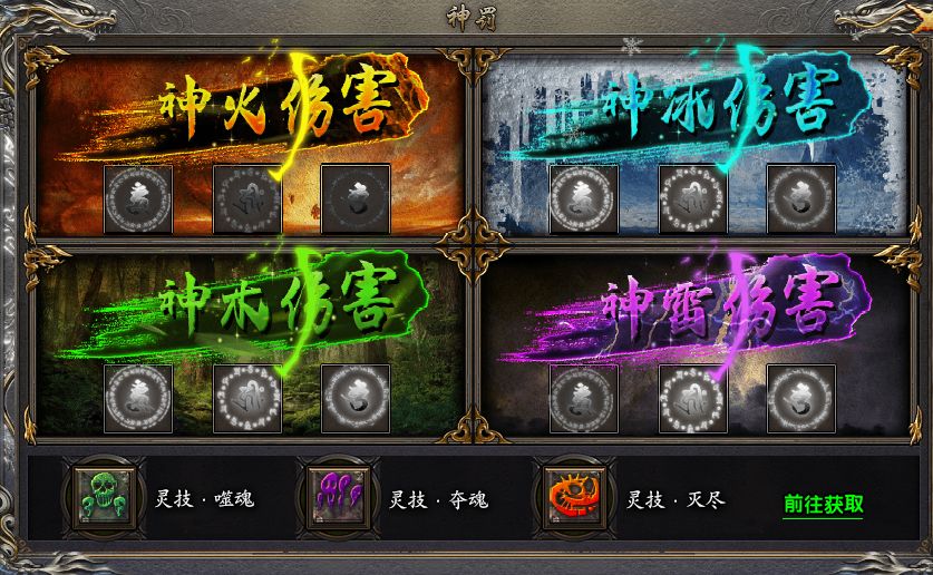 有了英靈助陣,還有更高階的“神罰”為玩家掃平障礙。神罰系統(tǒng)包括屬性加成和對應(yīng)屬性的神屬性傷害和神罰必殺技,通過神罰裝備來解鎖強大的效果。比如神火能概率為玩家的目標附加灼燒buff和最終傷害;神冰能概率給玩家的目標附加冰凍buff,玩家復(fù)活甚至有概率重置復(fù)活CD,讓戰(zhàn)斗難度大大降低;還有神木、神雷等神罰,個個都藏有驚喜,是玩家們不可不追求的豪華配置。這些神罰裝備需要靠神罰試煉來獲取,擊敗了5個試煉boss就有概率掉落神罰裝備和仙令玄晶,仙令玄晶可以直接提升神罰裝備階級。如果有多余的神罰裝備還能分解成神罰玉石,用來進行神罰裝備的進階。