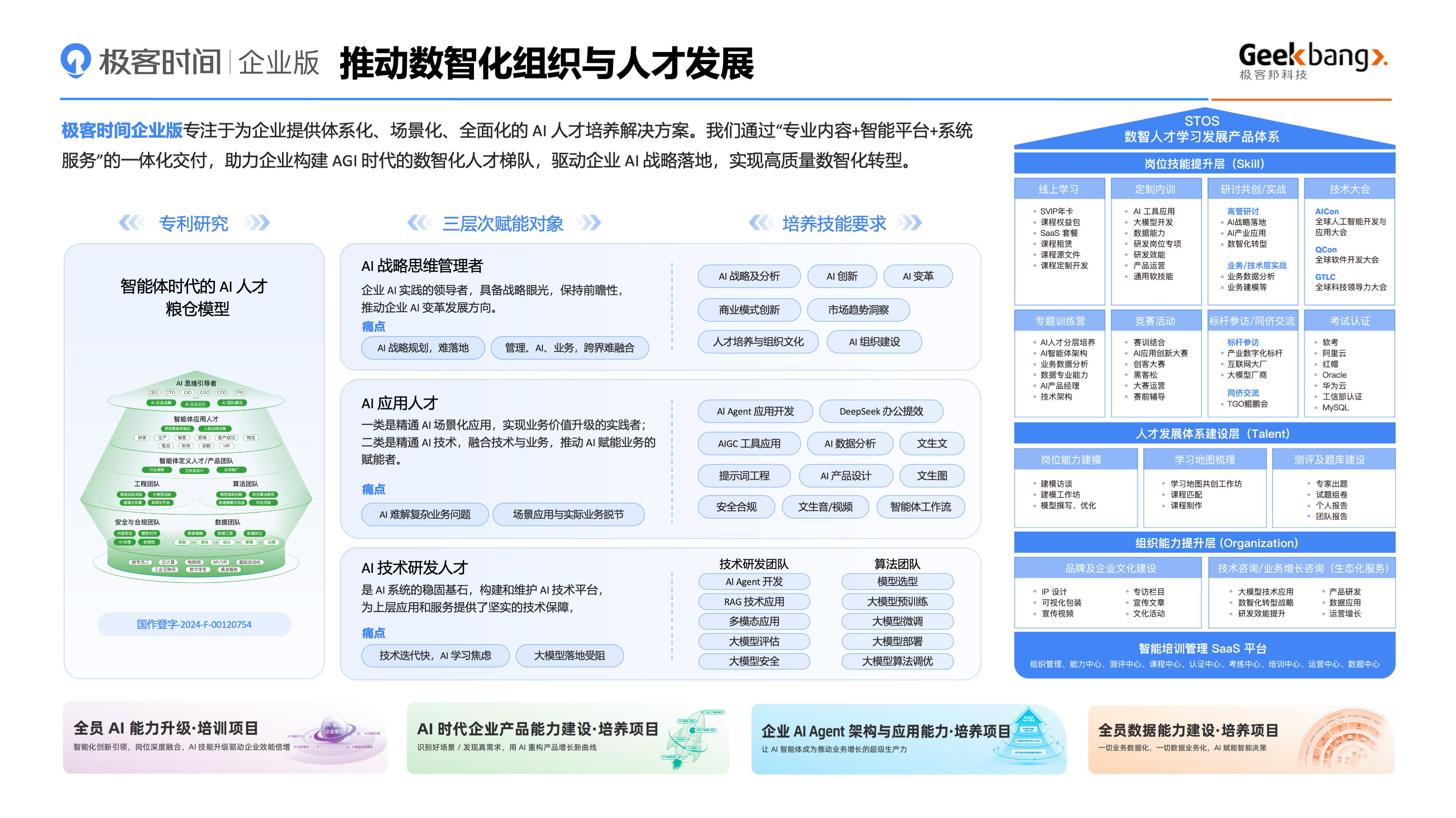 在本次集采中,極客邦科技并非在單一領(lǐng)域險勝,而是在“技術(shù)”、“市場及政企”、“培訓(xùn)資源開發(fā)”三大差異顯著的標(biāo)包中均取得優(yōu)異成績。尤其是在代表課程研發(fā)與知識產(chǎn)品化核心能力的“培訓(xùn)資源開發(fā)”標(biāo)包中名列榜首,在代表前沿技術(shù)落地能力的“技術(shù)”標(biāo)包中位列前三。這一成績分布證明,其能力模型已實現(xiàn)從底層技術(shù)培訓(xùn)到前端業(yè)務(wù)賦能的全面覆蓋,能夠滿足大型集團企業(yè)復(fù)雜、多元的綜合性人才發(fā)展需求。