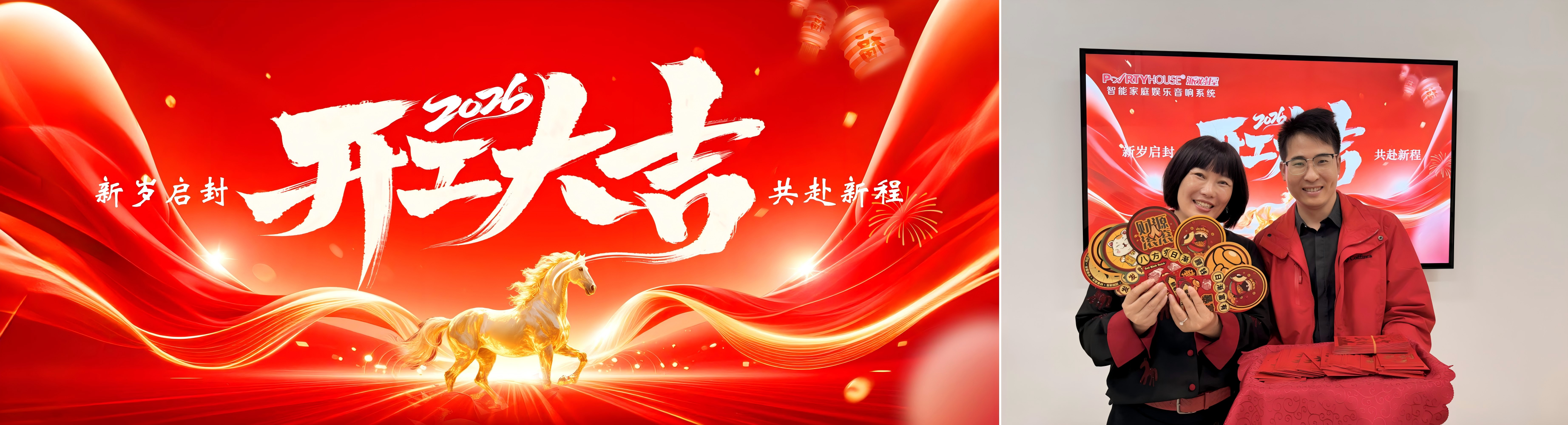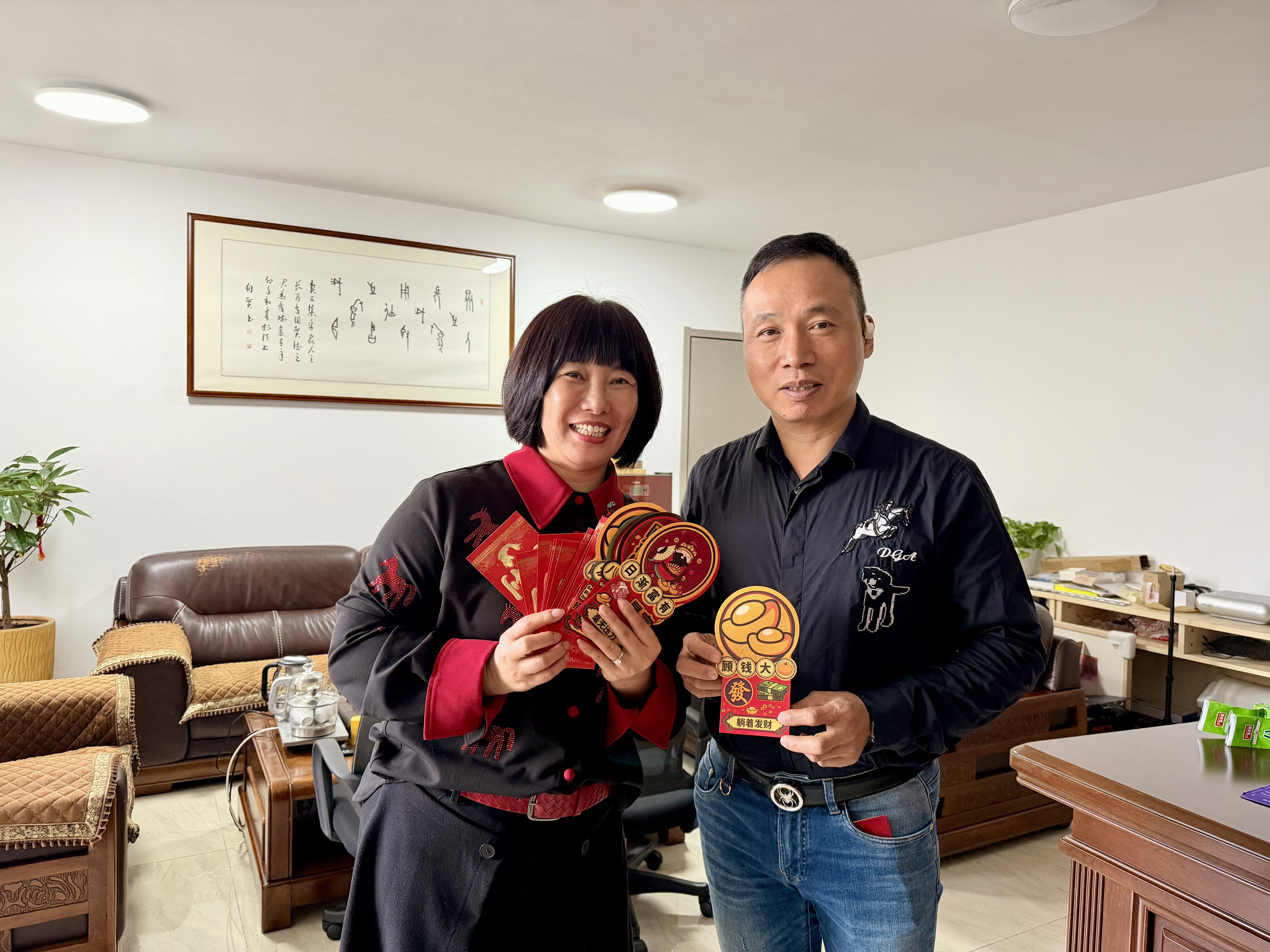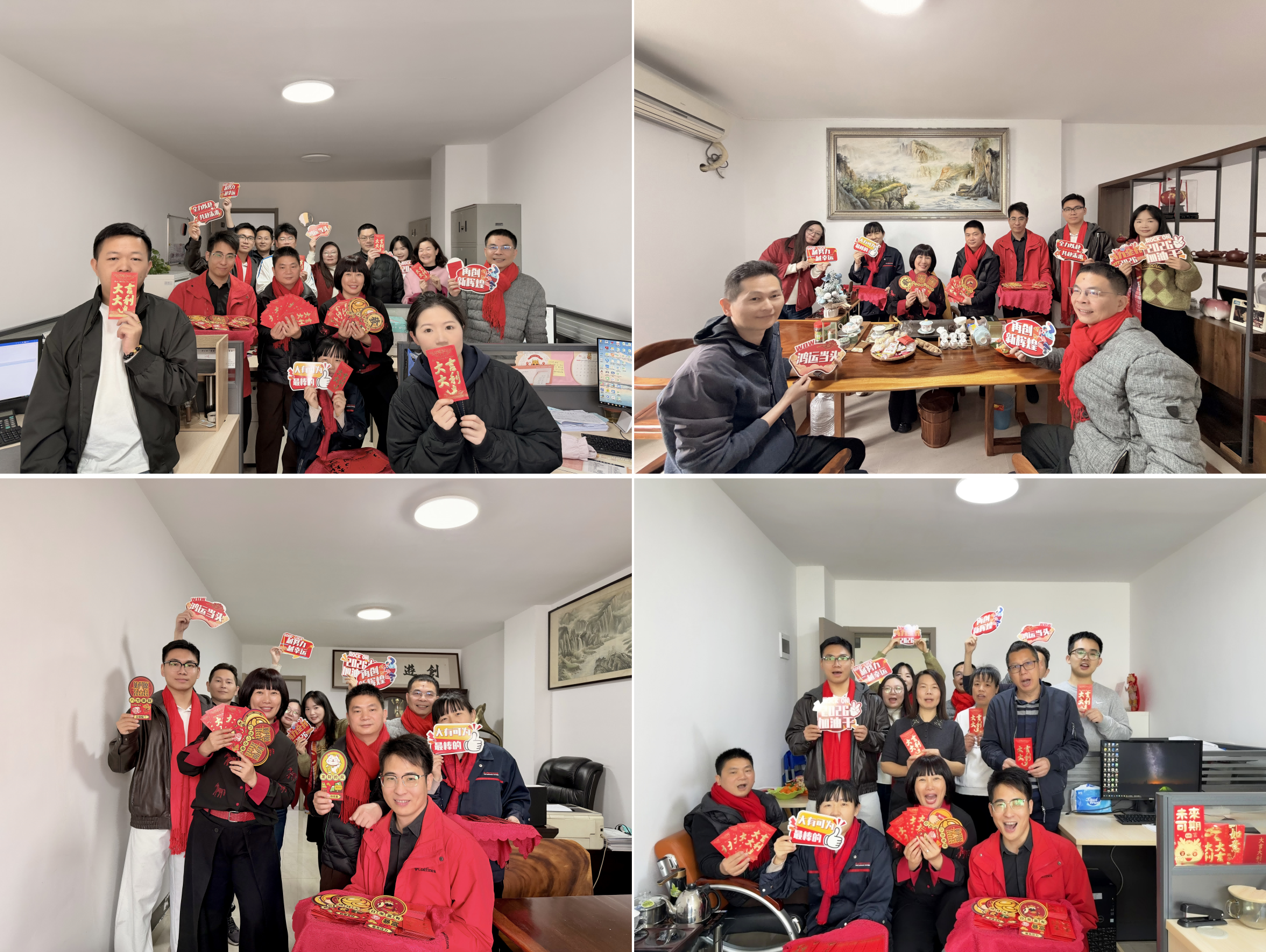 不少同事拿到紅包后在公司精心設(shè)置的“開工大吉”主題電視背景前合影留念,記錄這充滿期待的新起點(diǎn)。