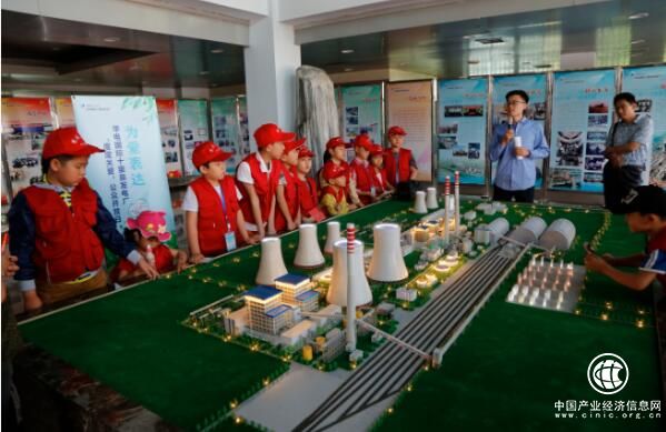 華電國(guó)際十里泉電廠講解員帶小學(xué)生觀看沙盤,介紹發(fā)電廠設(shè)備結(jié)構(gòu)