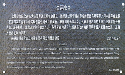 據(jù)了解,27日當(dāng)晚,由五糧液集團(tuán)公司贊助、為紀(jì)念本屆年會創(chuàng)作的雕塑作品“融”也正式揭開了神秘面紗。雕塑通過雙臂相扣形成的莫比烏斯環(huán)形,同本屆年會主題“在第四次工業(yè)革命中實(shí)現(xiàn)包容性增長”相契合。該雕塑將作為城市文化藝術(shù)地標(biāo)建筑,永久屹立于大連東港音樂噴泉廣場。(李珺)