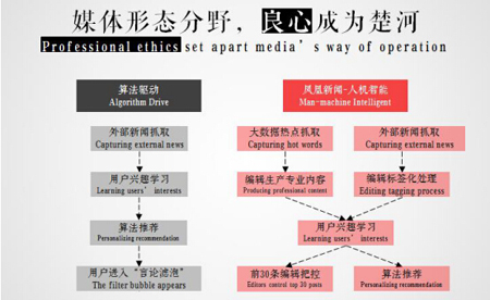 鳳凰網(wǎng)早在去年就給了大家答案:“人機智能”。與算法驅動的資訊分發(fā)平臺的簡單推送不同,鳳凰網(wǎng)以內容+技術兩條線路,發(fā)揮編輯與機器的能動性,提供給用戶既能覆蓋其價值需求,也能滿足其個性化選擇的優(yōu)質內容。一方面,鳳凰網(wǎng)對技術的應用不僅僅停留在抓取和分發(fā),而是將熱點反哺編輯,以實現(xiàn)更具用戶價值的專業(yè)內容的生產(chǎn);另一方面,在進行分發(fā)時,用戶收到的前30條信息是由編輯嚴格把控,既提供滿足用戶個人喜好度的內容,也保證用戶可以獲取有價值的高品質內容。